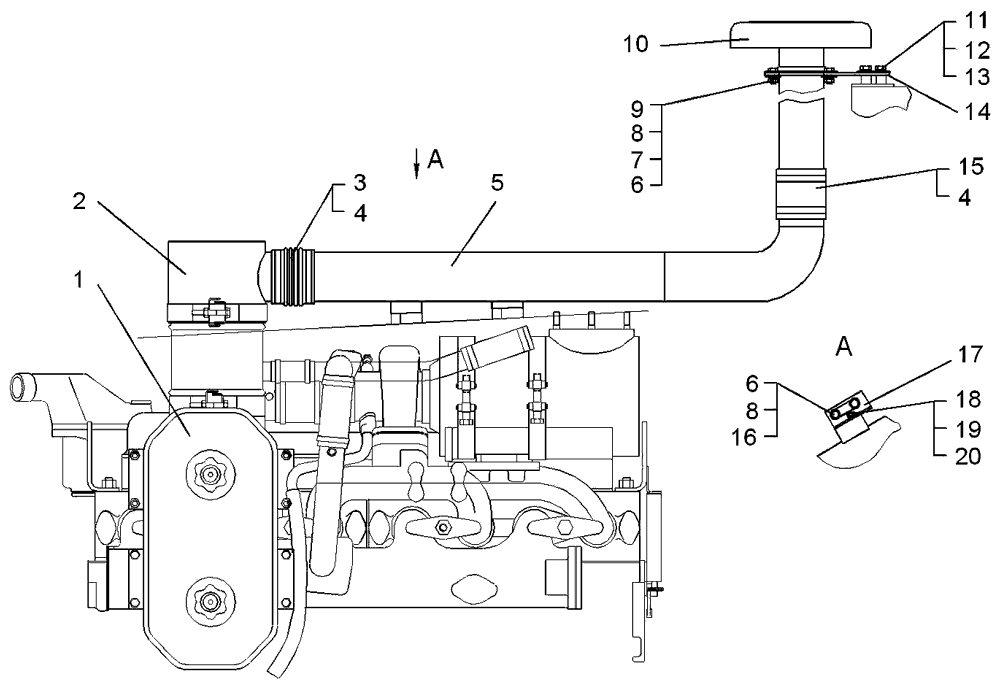 Установка агрегатов систем впуска и выпуска на Т10М (для тракторов, работающих в условиях повышенной запыленности)