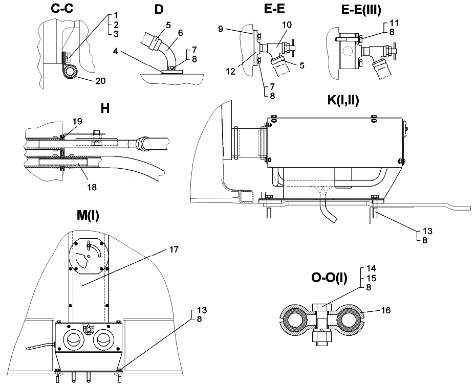 1 Для тропиков. Детали поз. 2-6. 8-14 для тропиков не устанавливаются.