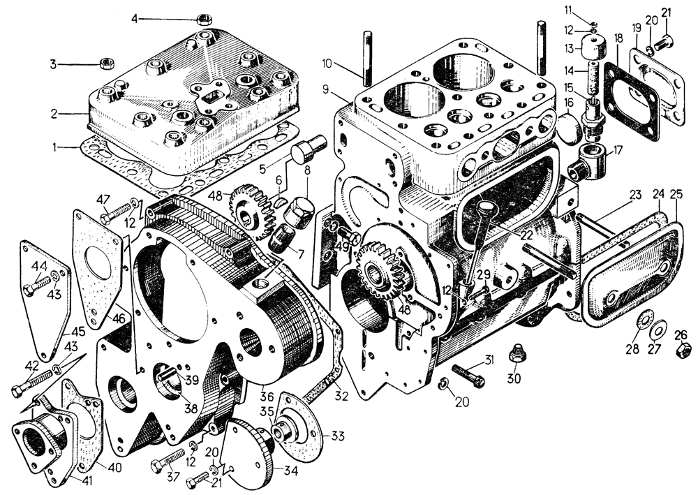Блок с кожухом и головкой пускового двигателя на Т-130