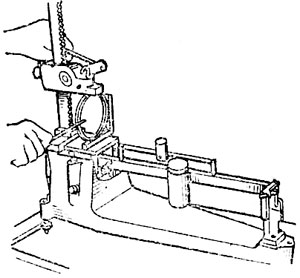 При определении зазора в подшипнике измерение диаметра отверстий во вкладышах, уставленных в шатун, производите в плоскости, перпендикулярной плоскости разъема шатуна и крышки (рис. 84).