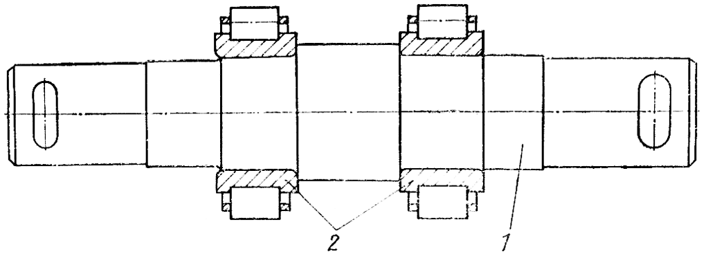 Рис. 293. Ось натяжного колеса с внутренними кольцами роликоподшипников