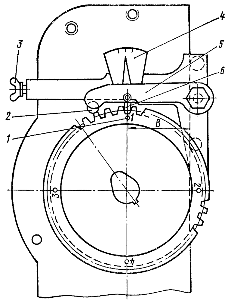 В этом положении метка «ВМТ 1—4 Ц» или «ВМТ 2—3 Ц» на маховике не должна доходить до острия указателя на угол (24±1)° для дизелей Д-160 и Д-160Б.