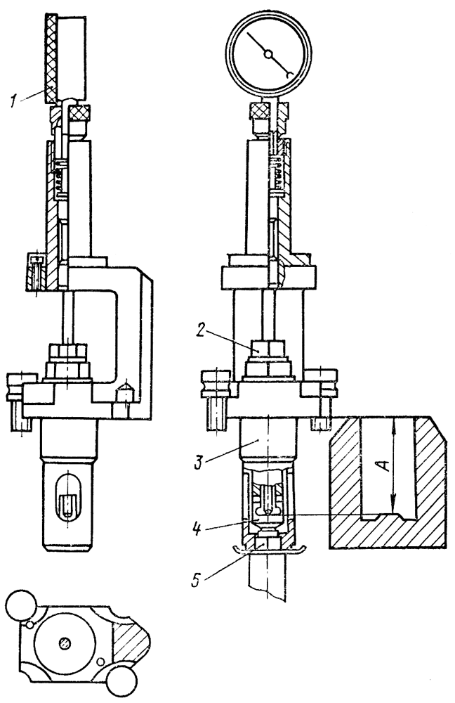 Установите, при положении стрелки приспособления на нулевом делении шкалы, размер А (45,5±0,05) мм ( рис. 177 ) от верхней плоскости блока до упорной поверхности регулировочного хвостовика толкателя первой секции.