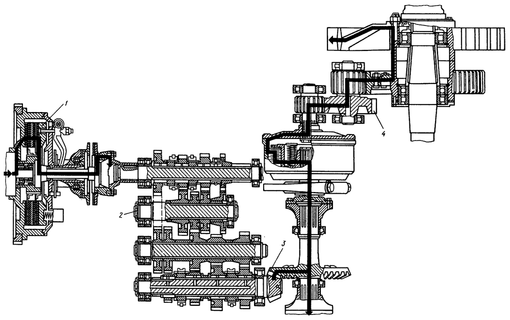 Рис. 75. Смазочная система трансмиссии (вид спереди) Т-130М