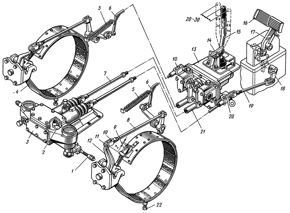 Рис. 76. Смазочная система трансмиссии (вид сбоку) Т-130М