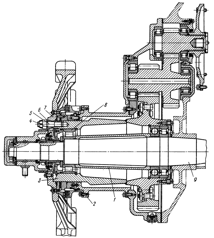Рис. 77. Насос с крышкой в сборе Т-130М